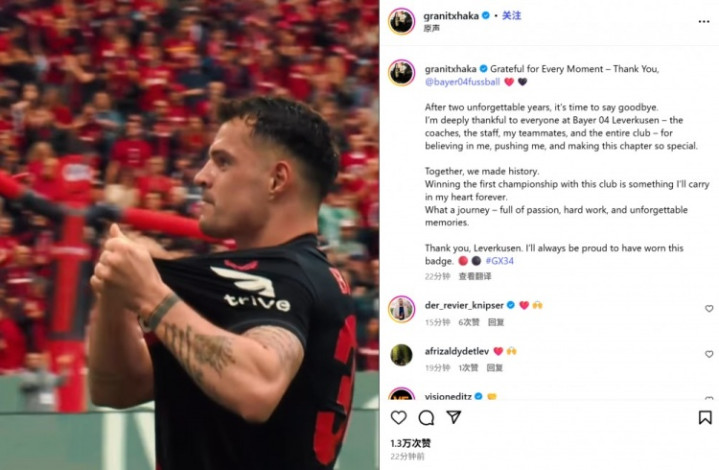 直播吧7月30日讯勒沃库森已经官宣32岁的中场扎卡转会桑德兰,后者也通过社媒发文告别:
