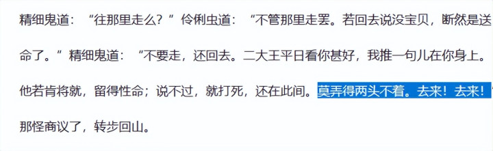 这样就非常清晰明了了,山指的是平顶山,大王是金银角大王,两人在寻找回山的路上迷失并产生了一定分歧,伶俐虫对玉净瓶小心翼翼,还期待回到平地山为大王效力,精细鬼对腰间的葫芦倒是没有那么在意只是随便挂着,没打没骂免了死罪且不缺吃喝还有法宝,便不再想回平顶山,这里也与原著中二人丢了法宝要不要回洞产生分歧相对应。