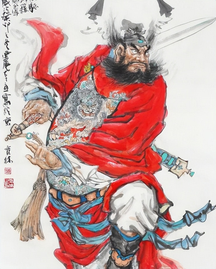 随后一头灵动的猛虎闯入镜头,正坐其上的正是一脸严肃的钟馗,黑脸红须,不怒自威。关于钟馗的座驾民间也有不同的版本,清代小说《斩鬼传》中阎王赐予钟馗的座驾是神兽白泽,这里骑乘猛虎的形象应该是来自明朝的《钟馗骑虎图》,无论各种传说里钟馗的身份武器座驾有何不同,形象都是一代代人传承认定的,豹头环眼,铁面虬鬓,相貌奇丑,其人典故传说最早记载于北宋沈括《梦溪笔谈》:唐玄宗病重不愈,某夜梦一小鬼盗走杨贵妃香囊及己之玉笛。正欲唤人,忽有一蓬发虬髯、戴角着袍之大鬼捉住小鬼,剜目而食。玄宗惊问其名,对方自称终南钟馗,因高祖时武举落第触阶而亡,蒙赐葬之恩,遂誓为除魔。玄宗醒后病愈,遂诏吴道子依梦绘像。