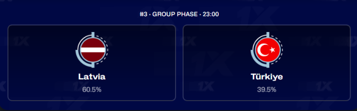 FIBA球迷投票预测本场胜率:拉脱维亚60.5%,土耳其39.5%