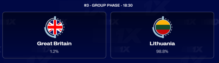 FIBA球迷投票预测本场胜率:英国队1.2%,立陶宛队98.8%