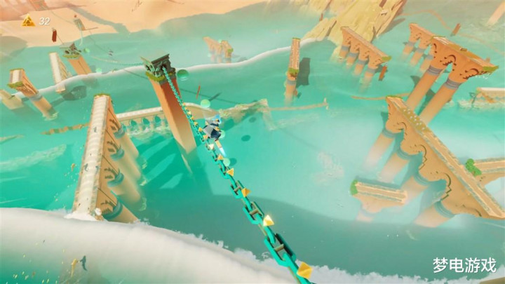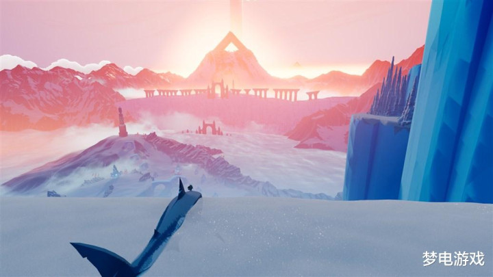 滑板行进的过程中,更接近那种雪山滑板,而不是海上冲浪板,虽然游戏中的沙漠是那种固体液体结合物似的波浪感觉,但是包括沙漠、后面雪山、岩浆包括爬塔等等等等,都不是冲浪的感觉。
