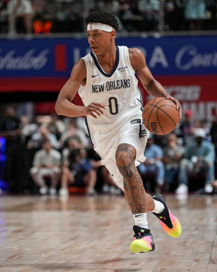 鹈鹕首先用7号签选中了来自俄克拉荷马大学的杰里迈亚-费尔斯,他身高191公分、体重82公斤、臂展196公分,NCAA大一赛季场均17.1分4.1篮板4.1助攻1.6抢断,三分球命中率28.4%,选秀模板为乔丹-普尔/贾马尔-穆雷。