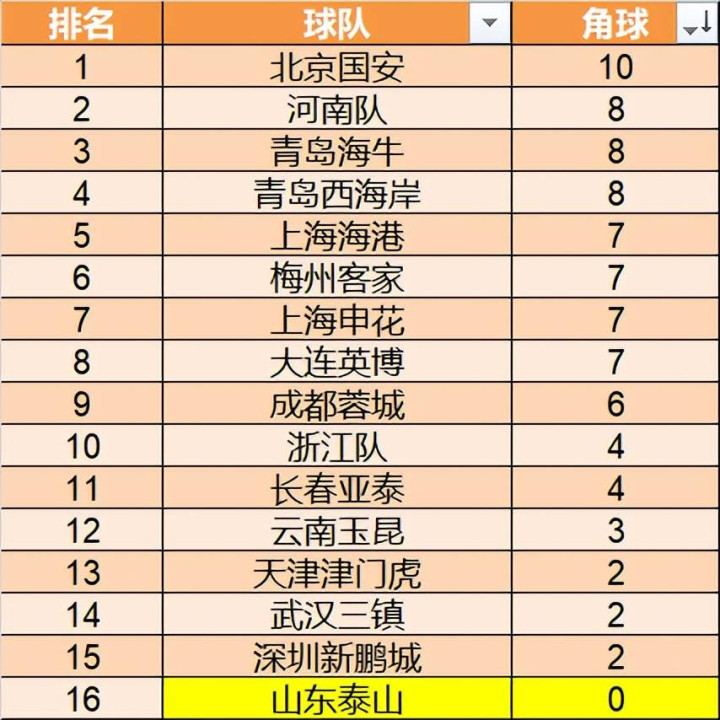 3.山东泰山本轮获得的角球数是0个,笔者没有去查球队此前三十年间有没有过单场0角球,哪怕有过,本轮也算是追平了那创纪录的难堪了。而山东泰山送给了对手河南队8个角球,并列中超第二。