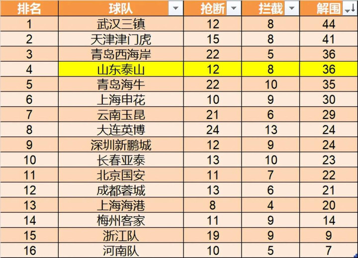 24.山东泰山本轮抢断数是12次,中超并列第9位。而河南队则是10次,中超倒数第二少?为什么对手抢断少?