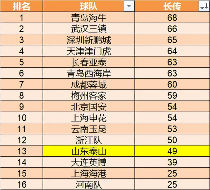 18.山东泰山本轮长传49次,中超位列第13位。对手长传25次,中超最少!为什么对手长传这么少?