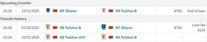 尹嘉熙今年20岁,司职中场。本赛季,代表山东泰山B队出战19场,其中11次首发,贡献了2个进球和1次助攻。根据德转信息,尹嘉熙已租借加盟南通支云,租期至今年年底,租借费1.2万欧(约合人民币10万元)。