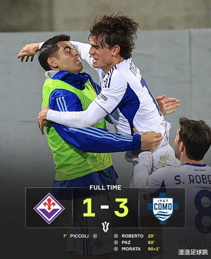 此后,佛罗伦萨试图通过换人加强进攻,但阵型前压的同时,后防也暴露出越来越多的空当。第90+1分钟,科莫打出快速反击,尼古拉斯-库恩送出精准直塞,33岁的皇马旧将莫拉塔冷静前插,在十二码附近迎球推射破门,3-1,彻底锁定胜局。最终,科莫客场3-1逆转佛罗伦萨,成功晋级意大利杯八强。从被动落后,到完成逆转,再到锁定胜局,法布雷加斯执教水平真的越来越强了,看来又有豪门要来挖人啦!