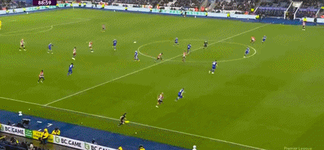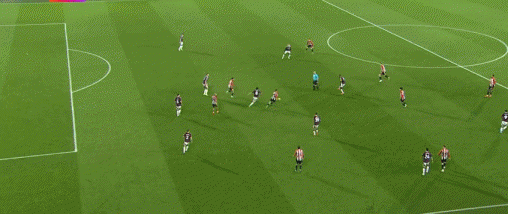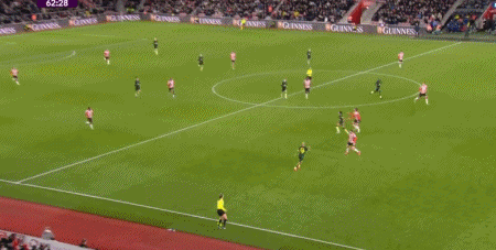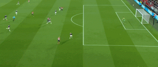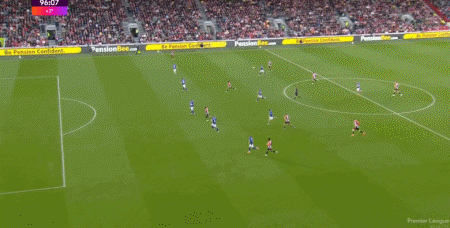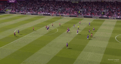 萨拉赫的金左脚效率极高,右路拿球内切后有多种方式威胁球门,姆贝莫同样不是一位双足技术均衡的球员,他仅靠出神入化的左脚技术就能让对手闻风丧胆。除了在右路内切后完成射门,姆贝莫还能准确地把握传中的时机和落点,可以充分利用边卫套上后拉开的空间制造杀机,这种“边前腰”属性在曼联的三中卫体系里有很大的发挥空间。
