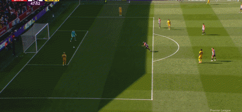 在克洛普执教时期,萨拉赫练就了堪比中锋的对抗能力,成为了边肋部的进攻支点。斯洛特将萨拉赫改造为“边前腰”,依靠他在右肋部送出的传中球给加克波和路易斯-迪亚斯等人创造机会,姆贝莫对这些打法都不陌生。托马斯-弗兰克时代的布伦特福德追求进攻速度,无论是开场阶段的长传打击,还是中场拦截后的快速推进,全队都会努力制造出双鬼拍门的局面,维萨对抗中卫吸引防守,姆贝莫不会拘泥于右边锋的位置设定,而是频繁来到中路直面门将。