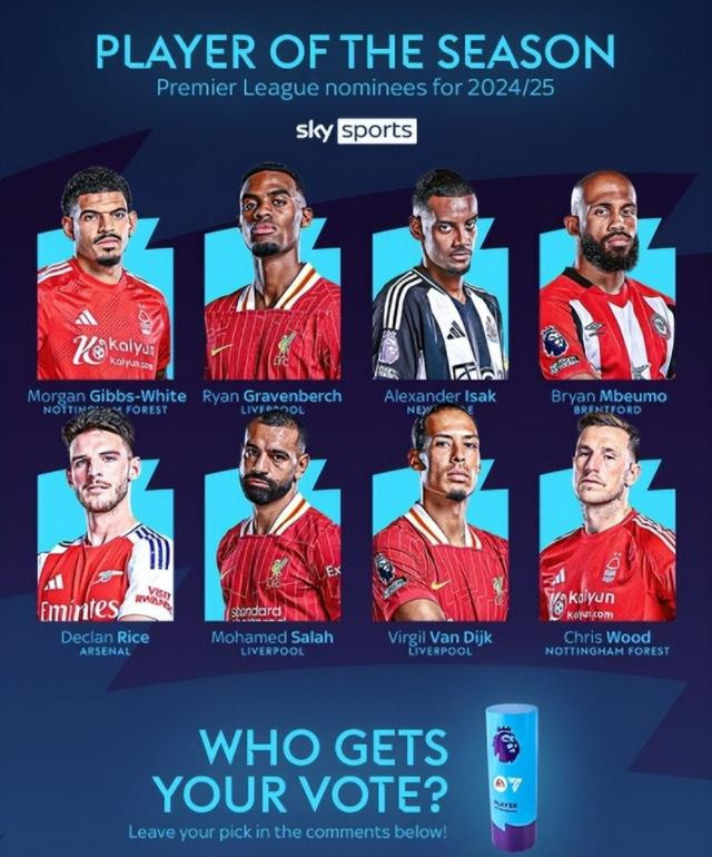 在英超官方评选的2024/25赛季最佳球员候选名单中,冠军球队利物浦贡献了3名球员,连续三个赛季夺得亚军的阿森纳,重返欧冠区的纽卡斯尔以及大黑马诺丁汉森林也都有代表入围。布伦特福德在其中略显突兀,他们的联赛排名位居中游,杯赛之旅亮点不多,姆贝莫能够在缺少团队荣誉背书的情况下入围大名单,完全得益于其极为“炸裂”的个人数据。