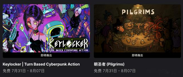 下周送出的是Keylocker | Turn Based Cyberpunk Action和朝圣者 (Pilgrims)。