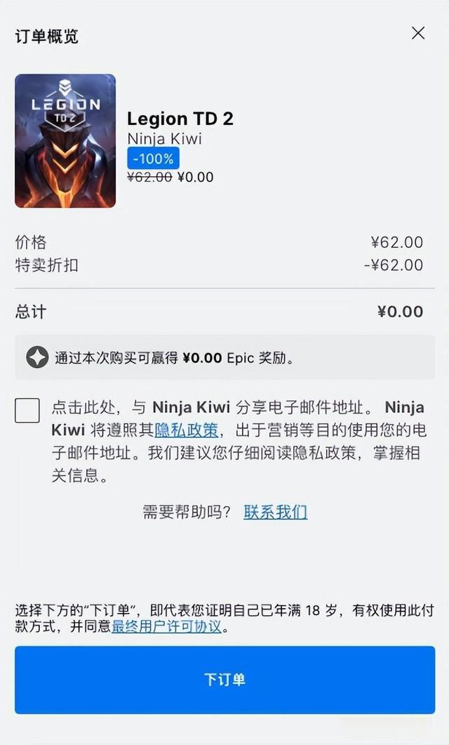 截止到7月24日晚23点,Epic官网搜 “Legion TD 2” → 点“获取”→ 0元结算入库