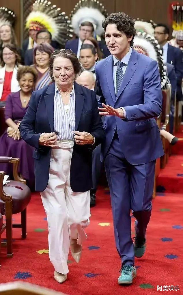 加拿大新国会开幕,特鲁多带老妈来观礼,他自己穿西装配绿色阿迪鞋,抢走全场的风头↓↓