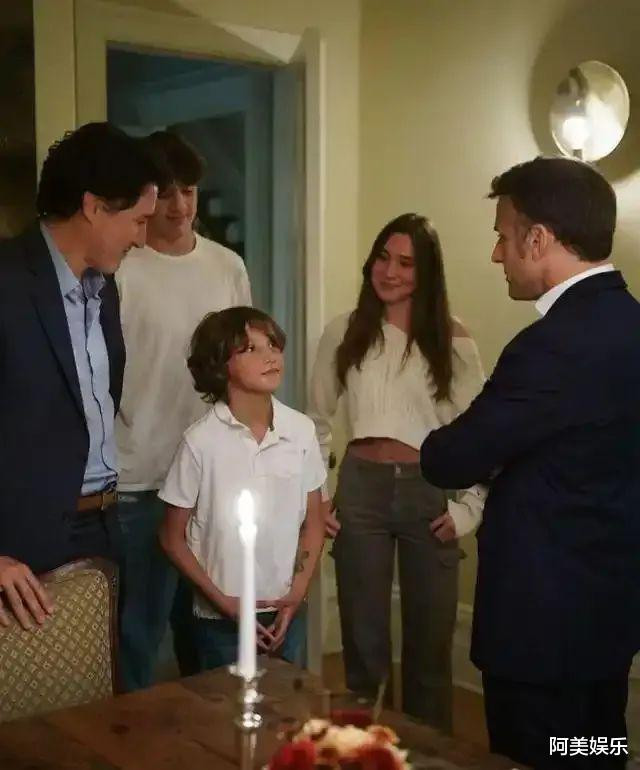 特鲁多和苏菲分居后,3个娃和特鲁多住一起。以前忙国家大事,离婚后可得带娃了,在家招待马克龙↓↓