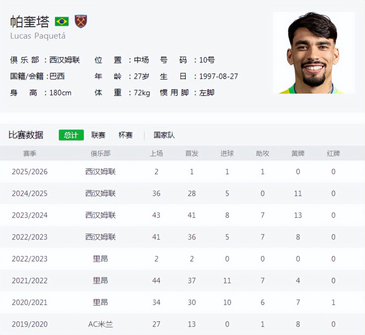 受到负面消息的影响,帕奎塔如今的身价只有3000万英镑左右,其实战水平应该在6000万英镑左右,西汉姆的标价是很客观的。当年与曼城传出绯闻时,帕奎塔的身价曾达到了8000万英镑,瓜迪奥拉对他的能力赞不绝口。