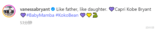 1999年的科比在手腕骨折后坚持训练的模样,此刻在女儿身上奇妙重生。瓦妮莎的配文简洁有力:"有其父必有其女,卡普里-科比-布莱恩特。"那条与父亲当年如出一辙的睡裤褶皱里,似乎还藏着永不妥协的曼巴基因。