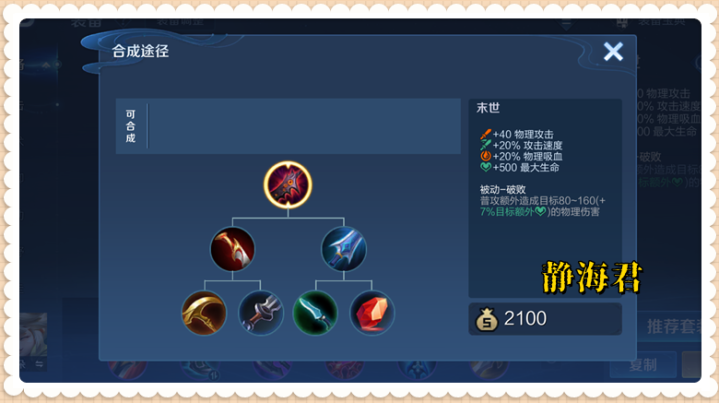 在普攻额外造成的伤害降低了5~10点的同时,末世的售价也小幅下调,综合来看,算是小削弱但影响不是很大。