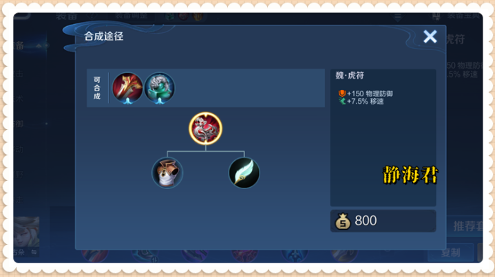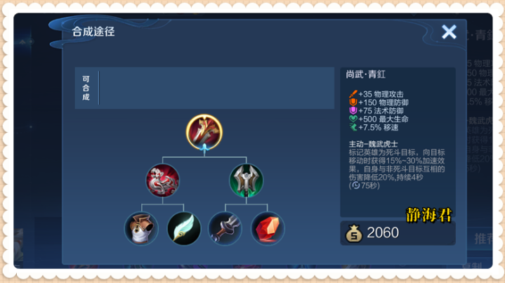 至于尚武-青釭对应二级装备则是魏-虎符,这件装备的属性是+150物理防御、+7.5%移速。