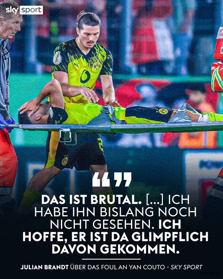赛后多特球员布兰特说道:“这太野蛮了,首先我们还算幸运,他的腿没有完全承受冲击,更像是被擦到。否则情况会非常糟糕。我还没见到他,希望伤势不会太严重。”