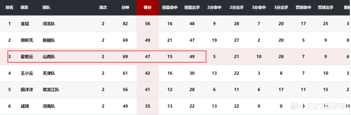 这两场全运会女篮成年组资格赛,翟若云合计拿到47分17篮板7助攻,她目前排在得分榜的第三位,在国家队只是一个投手的角色,而在全运会上却打成了得分机器。