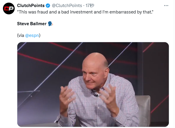 谈到5000万美元的投资,鲍尔默表示:“我对这家公司没有任何控制权。我只拥有不到3%的股份,没有董事会席位,也没有任何控制权。实际上,这是一家欺诈性的公司。可能根本没有人能够控制它。”