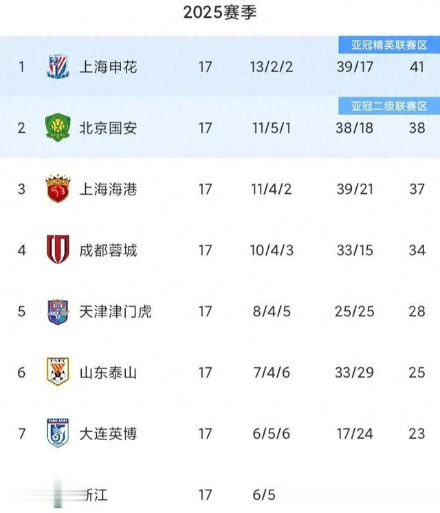 中超17轮格局又变:申花登顶,3队争冠,7队躺平,5队压力大。